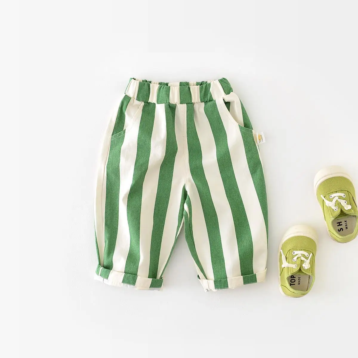 Dress your little one in comfort and style with these kids striped casual pants designed for everyday wear. Made from soft and breathable cotton fabric, they provide all-day comfort for active toddlers and young children. The loose fit allows for easy movement, making them perfect for playtime, outdoor activities, or casual outings. Featuring a classic striped design, these pants add a trendy and playful touch to any outfit. The elastic waistband ensures a secure yet comfortable fit, making them easy to put on and take off. Equipped with functional pockets, they offer added convenience for carrying small items. Suitable for both boys and girls, these unisex pants are versatile and practical for any wardrobe. Ideal for autumn weather, they provide just the right amount of warmth without feeling heavy. The durable construction ensures they can handle daily wear and frequent washing. Lightweight and flexible, they support your child’s natural movement throughout the day. Easy to pair with t-shirts, sweaters, or jackets, they fit effortlessly into any outfit. Perfect for school, playdates, or family outings, they combine style with functionality. These pants are a great addition to your child’s seasonal wardrobe. Keep your child comfortable and fashionable with these adorable striped casual pants.