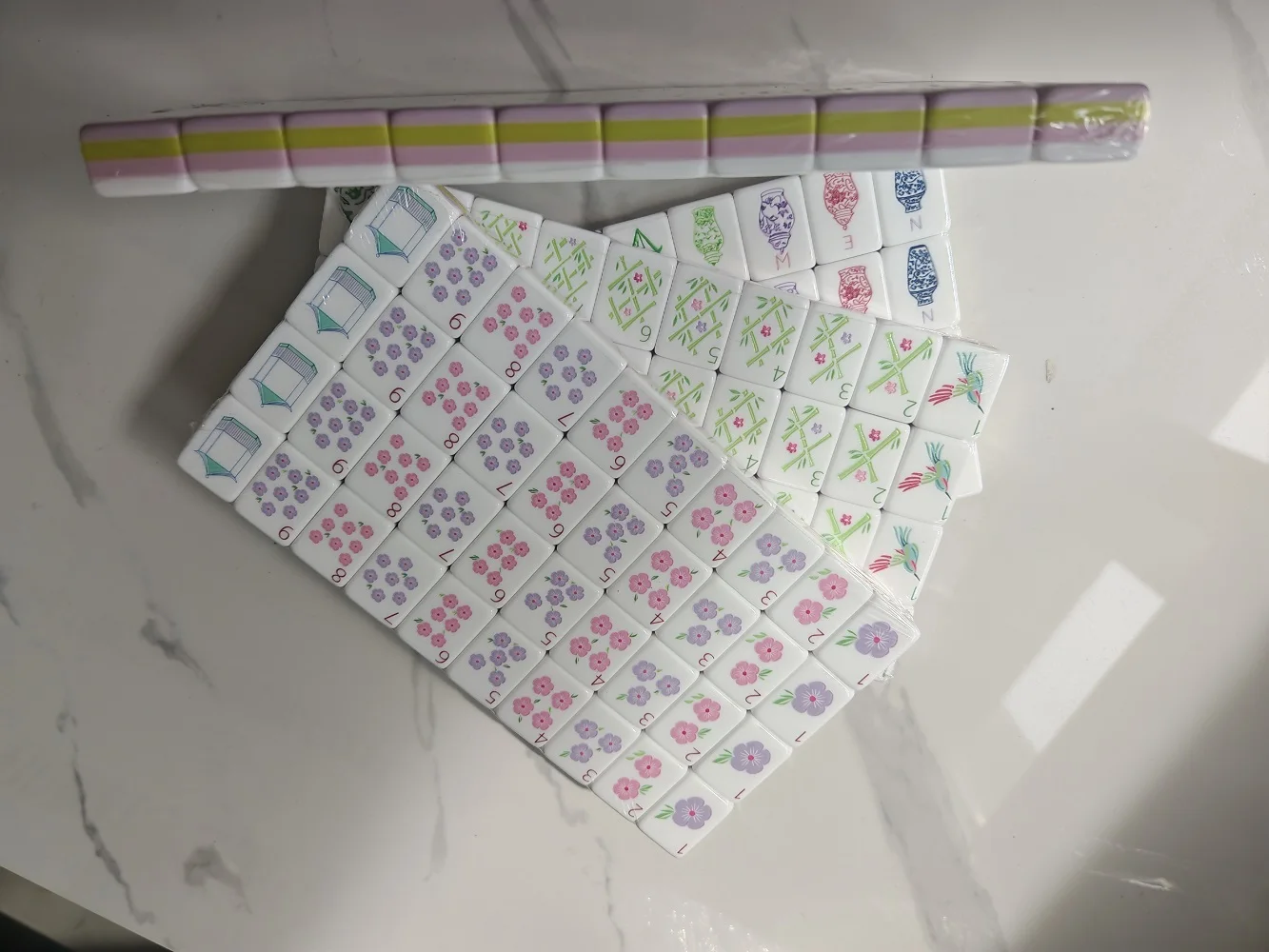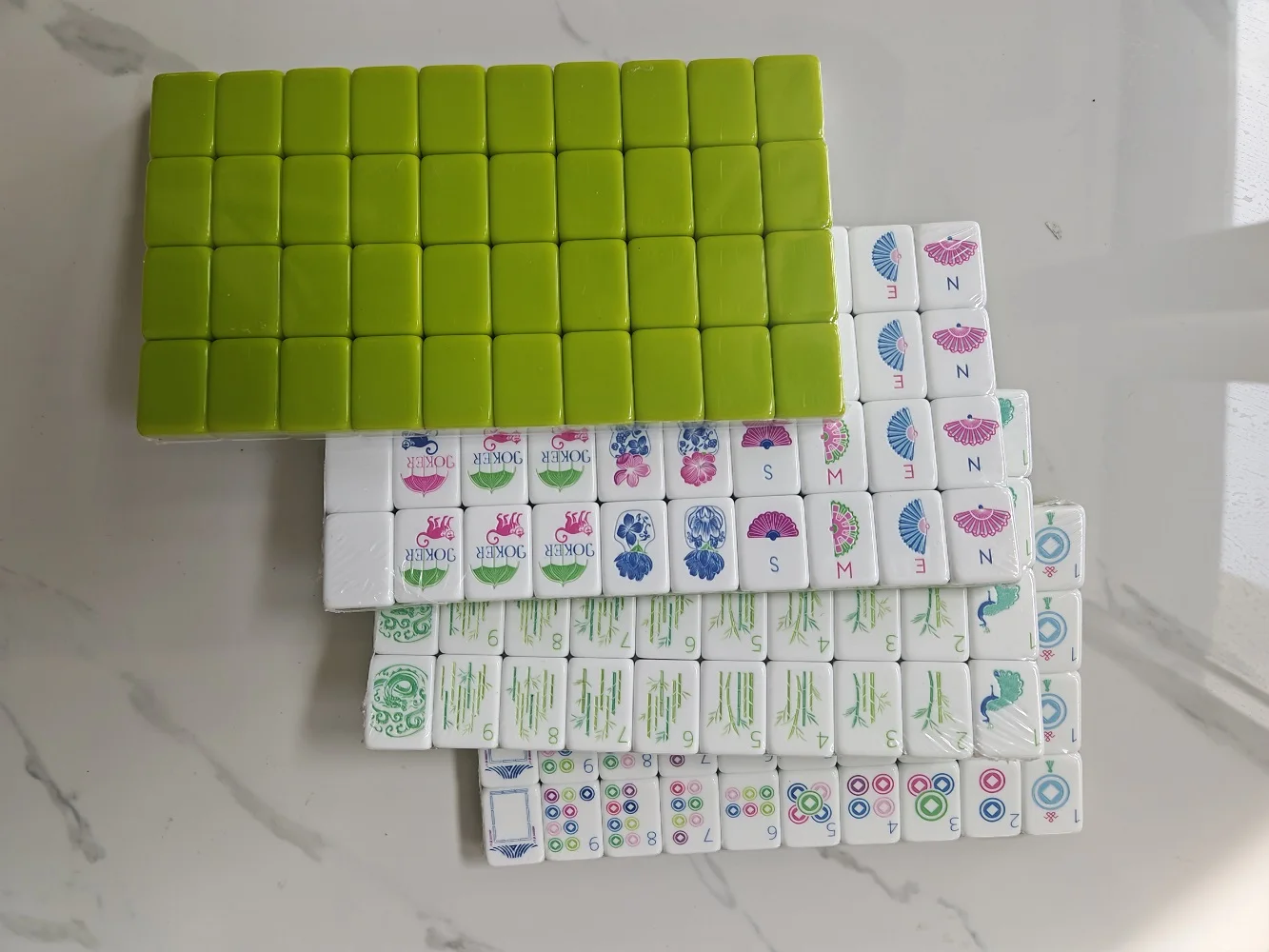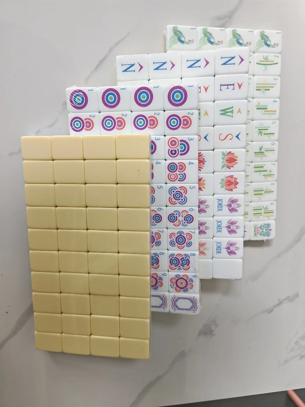 Enjoy timeless strategy and social fun with this American Mahjong tile set designed for family gatherings and game nights. Featuring a complete set of 160 tiles, it includes all standard pieces such as dots, bams, cracks, winds, dragons, flowers, jokers, and blanks for authentic gameplay. Crafted from durable acrylic, the tiles are smooth, easy to handle, and resistant to wear, ensuring long-lasting use. The multi-layer construction enhances both durability and visual appeal, making each tile easy to read during play. Designed for portability, this set is perfect for travel, allowing you to enjoy Mahjong anywhere from home to vacations. The compact design makes storage simple while keeping all pieces organized. Ideal for both beginners and experienced players, it offers an engaging way to develop strategy, focus, and social interaction. Mahjong is perfect for 4 players, making it a great centerpiece for parties, family time, or friendly competition. The high-quality engraving ensures clear symbols for smooth gameplay and easy recognition. This set encourages face-to-face interaction, helping build connections and create memorable moments. Lightweight yet sturdy, it is easy to carry for game nights on the go. Whether you’re hosting a gathering or looking for a thoughtful gift, this Mahjong set offers both entertainment and tradition. Its classic design blends culture, strategy, and fun into one complete experience. Elevate your game nights with this stylish and portable Mahjong tile set.