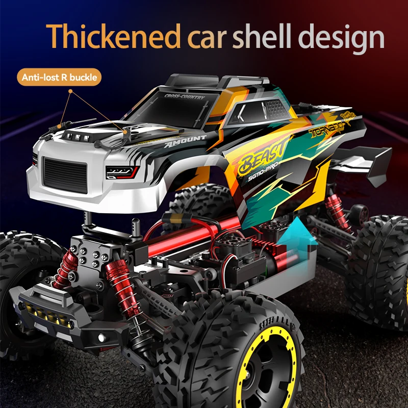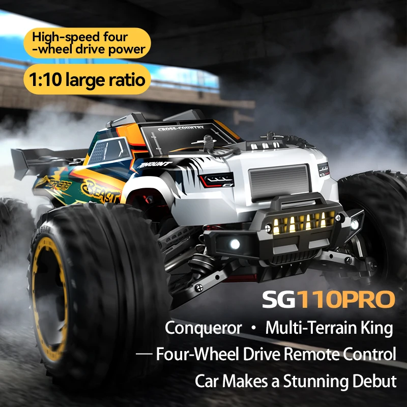 Experience thrilling performance with this high-speed 1:10 scale RC off-road truck designed for power and durability. Equipped with a 4WD system, it delivers excellent traction and control across rough terrains such as dirt, grass, sand, and gravel. The powerful electric motor provides impressive speed and acceleration, making every drive exciting and dynamic. Built for climbing and off-road adventures, this RC car handles obstacles with ease and stability. Its rugged construction ensures durability, allowing it to withstand impacts and tough driving conditions. The 2.4GHz remote control system offers stable signal transmission and responsive handling without interference. Suitable for both kids and adults, it provides an enjoyable driving experience for all skill levels. The large-scale design enhances realism and performance, making it stand out among standard RC cars. Its shock-absorbing suspension system improves handling and ensures smoother rides on uneven surfaces. Perfect for outdoor fun, racing, or casual play, it adapts to different environments effortlessly. The ergonomic controller makes it easy to operate, even for beginners. Designed for long-lasting use, it maintains performance through repeated runs. Whether you’re racing or exploring off-road trails, this truck delivers power and excitement. Take your RC adventures to the next level with this durable and high-performance off-road vehicle.