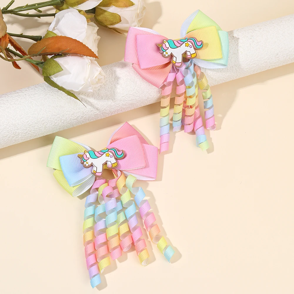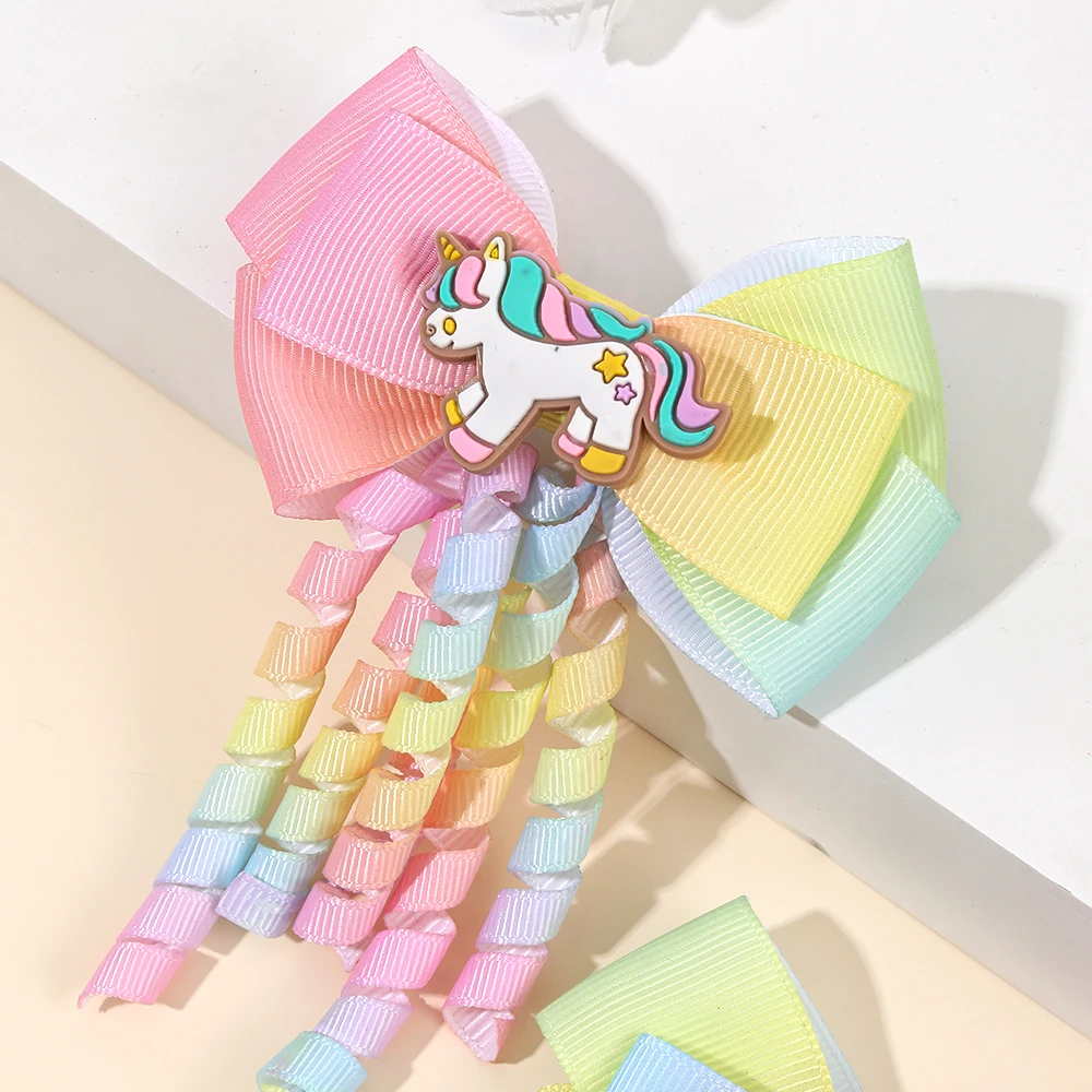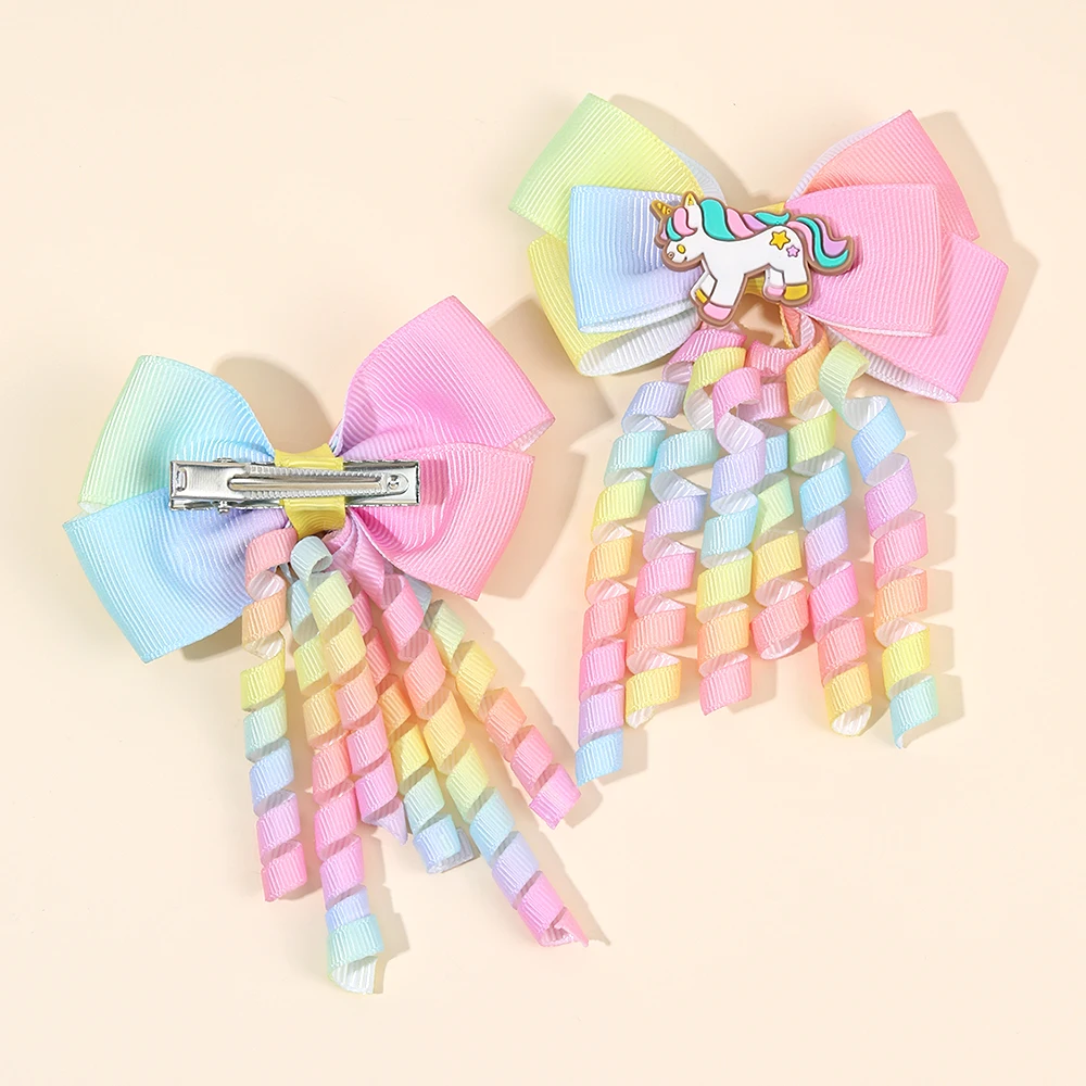 Bring a touch of magic and color to your little girl’s hairstyle with this set of 2 unicorn hair clips. Each clip features a cute rainbow unicorn design with curly ribbon and tassel details, adding a playful and whimsical flair. Perfect for parties, school, daily wear, or special occasions, these hairpins enhance any outfit with charm and fun. Lightweight and comfortable, they hold hair securely without causing discomfort or damage. Ideal for ponytails, side bangs, or decorative accents, these clips make styling quick and effortless. Made from durable materials, they maintain their shape and vibrant colors even after repeated use. Suitable for girls of all ages, they provide a gentle hold on fine or thick hair. Compact and portable, these hair clips are easy to carry for on-the-go touch-ups. The colorful ribbons and tassels create a joyful and magical look, perfect for imaginative play. These hairpins also make a delightful gift for birthdays, holidays, or any celebration. Smooth edges prevent hair breakage and tangling while ensuring comfort. Mix and match with other hair accessories to create layered and stylish hairstyles. Add a playful, magical, and fashionable accent to your child’s hair with these unicorn hair clips. Fun, practical, and stylish, they are a must-have for young girls who love colorful and enchanting hair accessories.